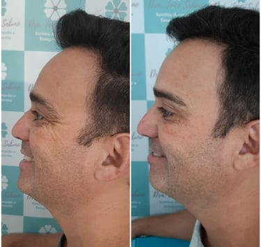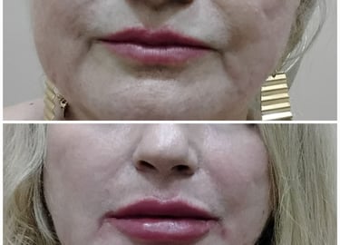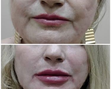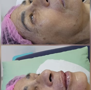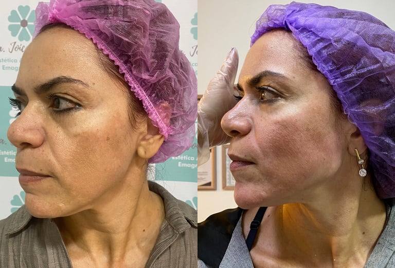 Uso de ácido hialurônico para volumizar áreas como olheiras, maçãs do rosto e "bigode chinês", além de contorno labial
