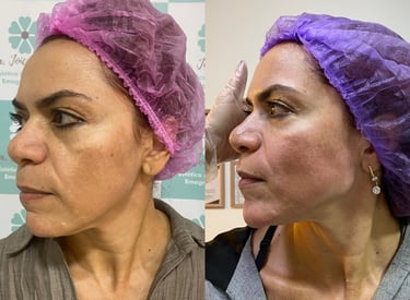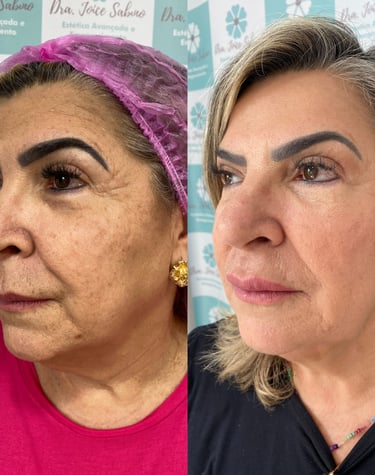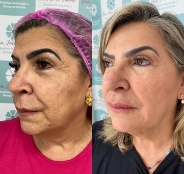 Conjunto de procedimentos (botox, preenchimento, fios) para equilibrar os traços do rosto